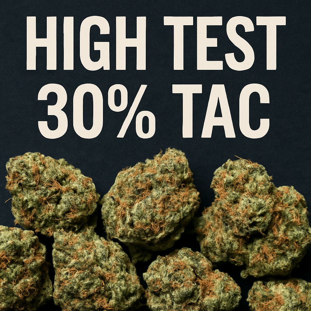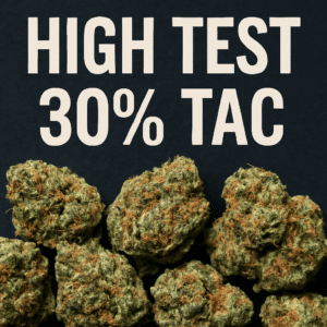 “High test” refers to cannabis strains with exceptionally high levels of Total Active Cannabinoids (TAC)—typically over 30%. This includes THC as well as minor cannabinoids like CBD, CBG, and CBN. TAC is the a strong indicator of a strain’s total potency.