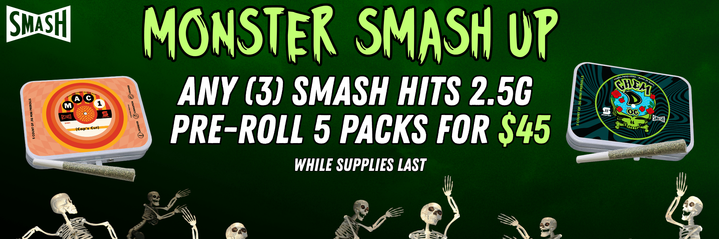 -Any (3) Smash Hits 2.5g Pre-Roll 5 Packs for $45!