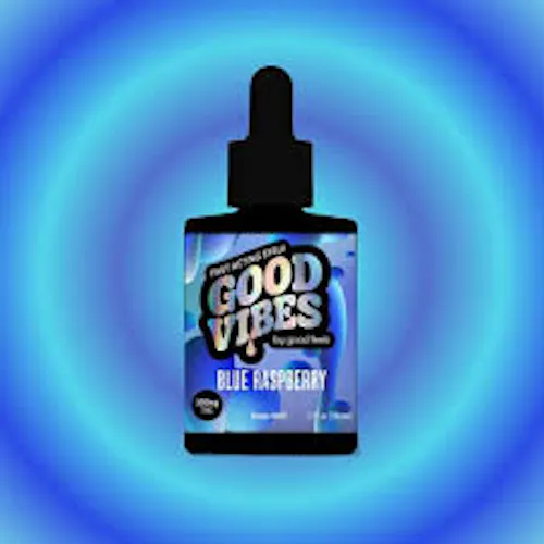 Blue Raspberry flavored Fast-Acting Beverage Syrup​. Unveiling 'GOOD VIBES' Fast Acting Syrup! Elevate your moments with 500mg THC for ultimate euphoria and taste.​Try a few drops, wait 15 minutes, continue as needed!​Ingredients: Water, corn syrup, vegetable glycerin, sugar, modified starch, MCT Oil (palm), cannabis distillate oil (ethanol extracted), blue razz flavor, sodium benzoate, citric acid, sucrose acetate isobutyrate