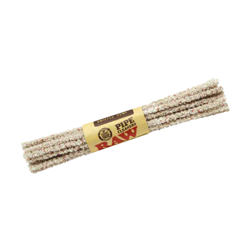 Raw Bristle Hemp Pipe Cleaner's make keeping your pipe looking like new a breeze. Made from natural, unbleached hemp and wrapped around an iron core, these pipe cleaners make a great addition to your cleaning regimen. Strong, absorbent, and flexible the Raw Hemp Pipe Cleaners can reach into small spaces to break up build up that can't be broken down by cleaning solutions. The bristled cleaners provide a rougher texture than the soft cleaners and provide a stronger option for breaking down build up. Each bundle contains 24 pipe cleaners.