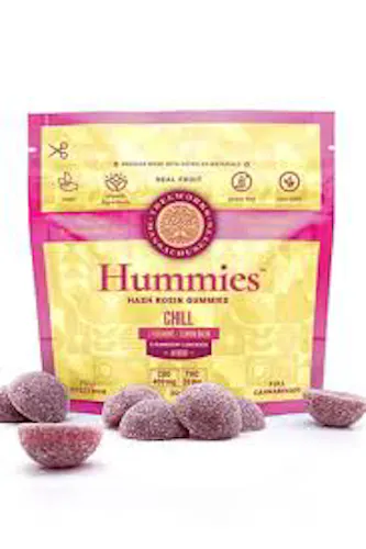 Chill: Strawberry Lemonade Hummies by Treeworks is a solventless live hash rosin gummy edible built for a high-CBD, low-THC microdose experience. The flavor leans into real fruit, with ripe strawberry and tart lemonade notes rounded out by a soft citrus-herbal finish. Infused with lemon balm and L-theanine, it’s designed for a gentle, clear-headed calm that fits daytime routines, social hangs, or winding down without feeling foggy. These Massachusetts-made Hummies are vegan, gluten-free, non-GMO, and crafted with organic ingredients for a clean, fruit-forward bite every time. Consume responsibly. 21+ only.