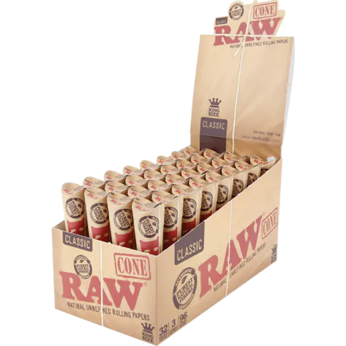RAW Cones are often out of stock and very hard to come by. Here’s the issue – RAW cones use a water-based gum that takes a long time to dry. That means RAW cones are rolled, then they have to sit for 24 hours before they can be stacked and packed. It makes for very slow production. Other brands use pure Ethyl Vinyl Acetate (Chemical glue). Their glue dries almost instantly so they can produce their cones much faster and cheaper.